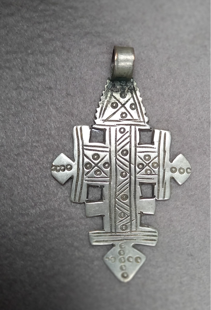 Dit handkruis is uitgevoerd in Ethiopisch zilver,